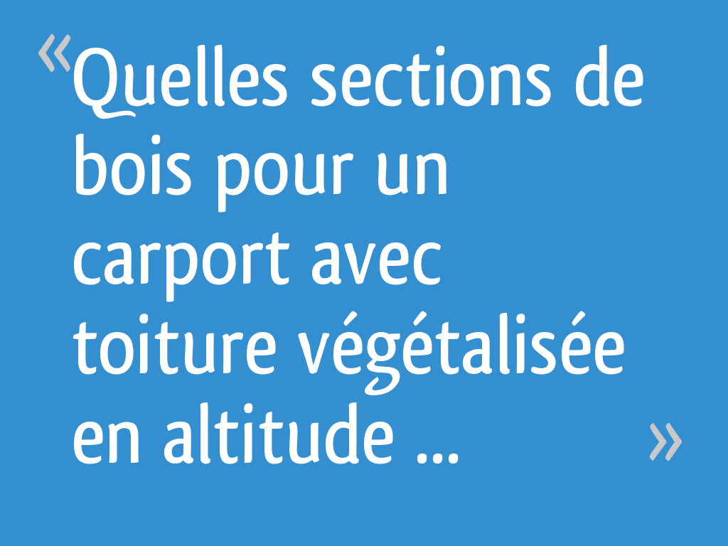 Ainsi, avec ce système les variations thermiques sont réduites en moyenne de moitié par rapport à une toiture classique. Pour la réalisation d'une toiture végétalisée, vous l'aurez deviné, il faut absolument s'enquérir d'un professionnel qualifié. Réalisation d'un carport grande carport sur mesure. Ainsi, vous êtes certain que la construction a été placée comme il faut.